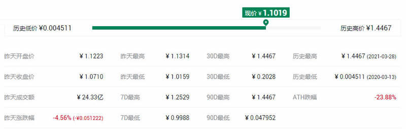 BTT流通市值115.62亿美元,流通数量9899.38亿,24小时成交额44.73亿美元。