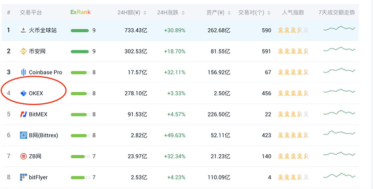 4、OKEx交易量及排名