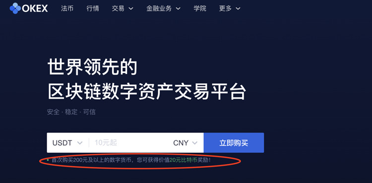 目前OKEx有新用户活动,首次购买200元以上的数字货币,即可获得价值20元比特币。如上图。还有免费比特币活动,每日学习区块链知识即可每日获取免费比特币。