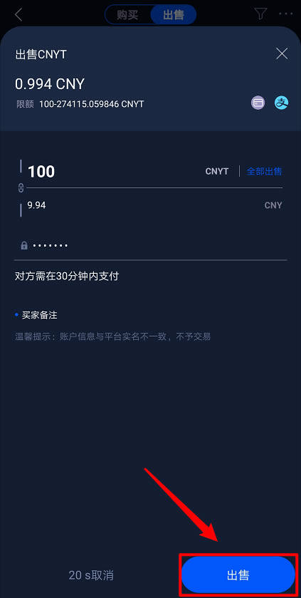 注:若交易中途退出页面,请到用户订单中找到订单进入处理,否则将不能下新的OTC订单,订单还可能被自动取消。