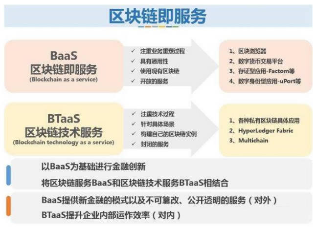 那么区块链切入云平台,根据这个BaaS中的“B”,blockchain,应该怎么理解。或者应该区分BaaS和btaas,BaaS和btaas根据网络上一些说法baas是指区块链即服务btaas是指区块链技术即服务。各种观念的提出都有自己的理论基础,这里不做定义,只是对两个理解做一个笔者自己的简单理解,如有不对希望及时指正。