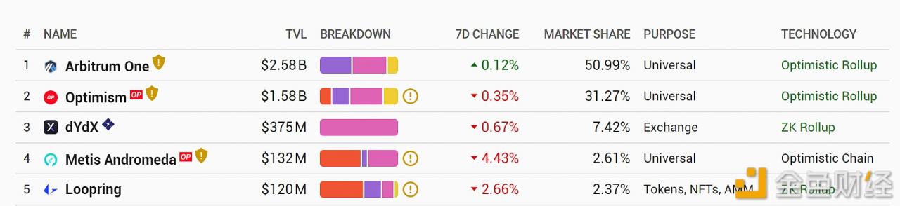 以太坊L2网络总锁仓量为50.6亿美元 更新时间:2024-10-31 23:03:27 •阅读 0 L2BEAT数据显示,截至11月3日,以太坊Layer 2上总锁仓量为50.6亿美元。其中锁仓量最高的为扩容方案Arbitrum,约25.8亿美元,占比50.99%;其次是Optimism,锁仓量为15.8亿美元,占比7.42%;第三为dYdX,锁仓量为3.75亿美元,占比7.42% 以上内容就是小编今天要带给您的资讯,不知道您还喜欢吗?如果您觉得对您有帮助的话,欢迎常来欧意下载哦