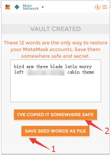 下载MetaMask之后,根据提示创建自己的登录密码、助记词。