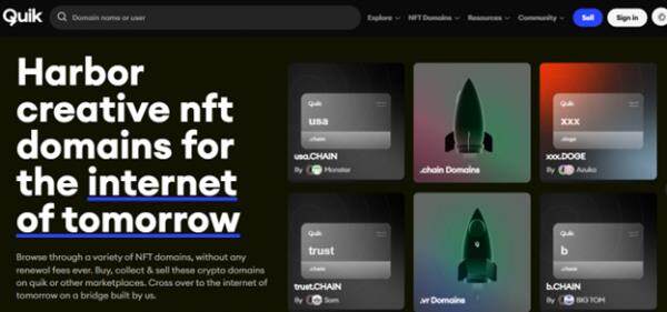 .metaverse、.vr、.chain、.address、.io、.bored、.doge、.shib、.btc、.web3等结尾的域名都可作为Quick的域名使用。