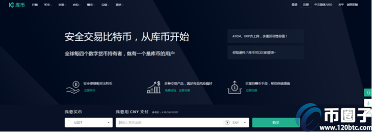 库币资产1856.76万美元,共有301个交易对,24小时成交额1.23亿美元。