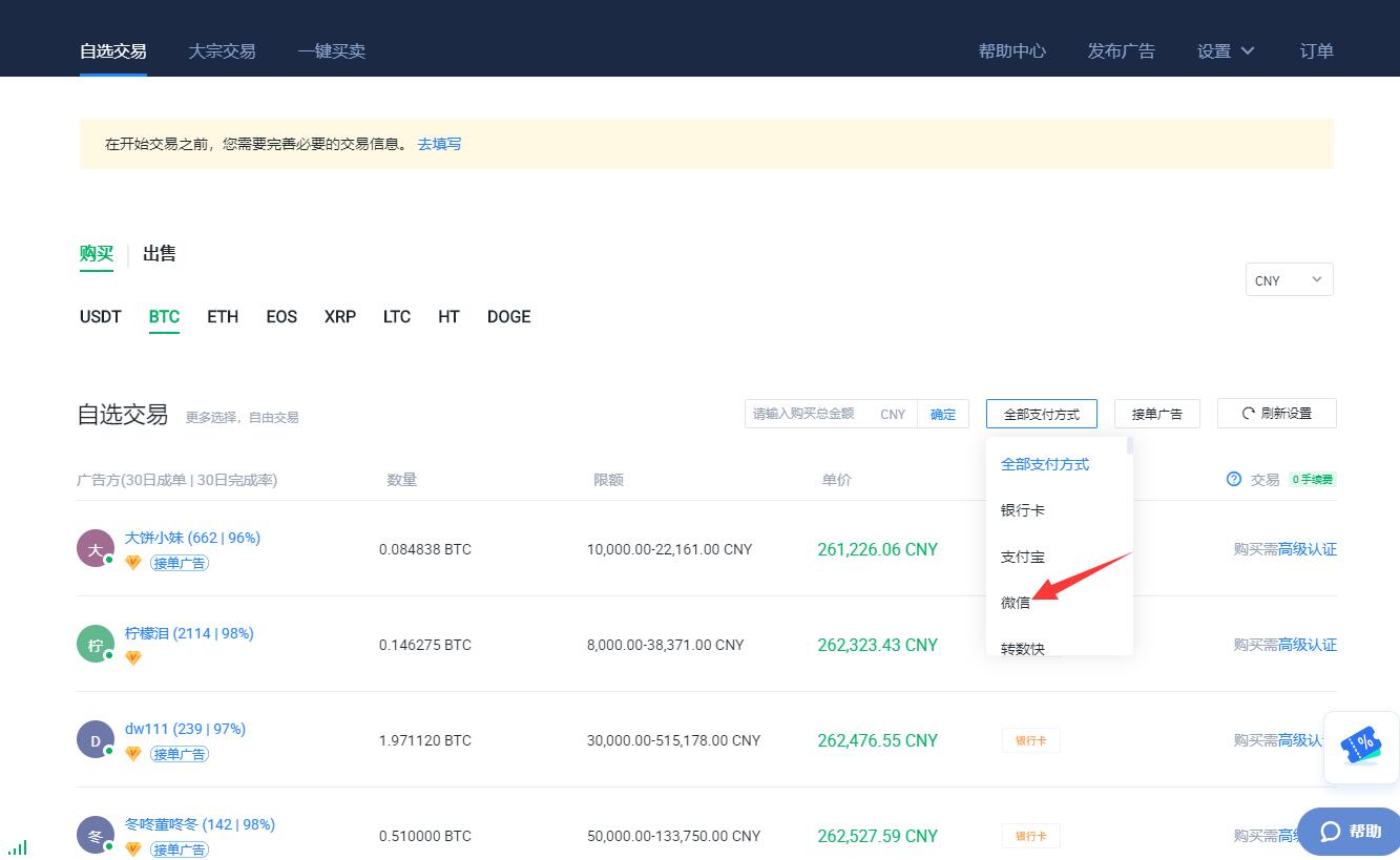 选择你要交易的商户,然后选择你要交易的数量,完成订单,就可以了。