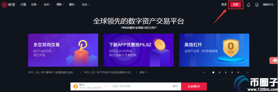 打开ZB官方网站,点击右上角“注册”按钮。新用户可用手机或邮箱注册。