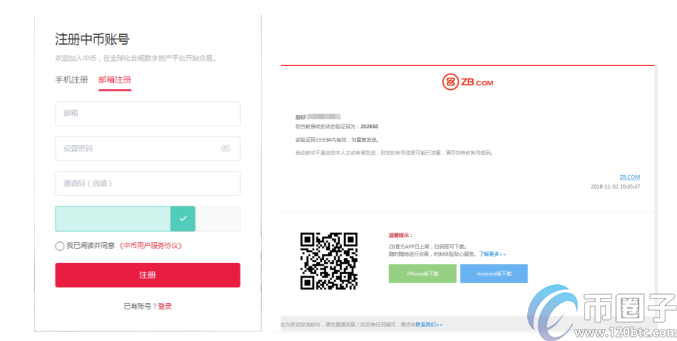 1、输入邮箱地址与密码,滑动验证。阅读并勾选“我已阅读并同意《ZB用户服务协议》”,点击“注册”, 并输入邮箱验证码即为完成注册。