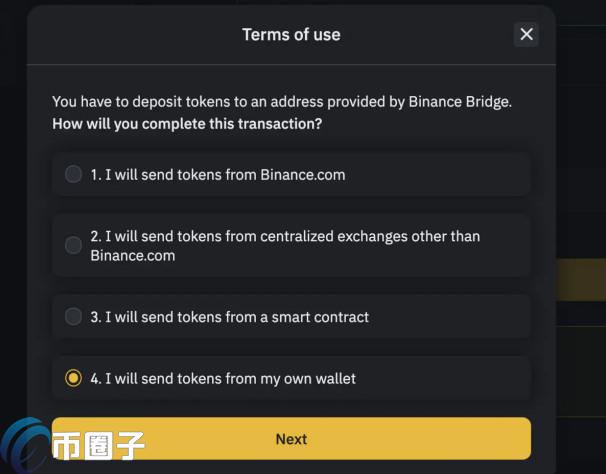 然后点下一步,在这个弹窗中是问你要从哪里提供这个trx20的usdt