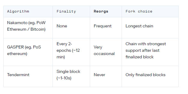 在一些分叉选择规则中(例如 Tendermint ),重组是不可能发生的;分叉选择规则只是通过添加任何已经通过 BFT(Byzantine Fault Tolerance :拜占庭容错) 共识并最终确定的区块来扩展现有的链。在其他分叉选择规则中,重组是非常频繁的。