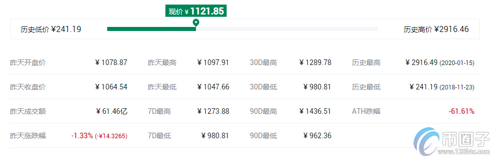 以太坊市值696.57亿美元,占全球总市值的11.22%,流通总量1.13亿,24小时成交额85.09亿美元,上架了326交易所。