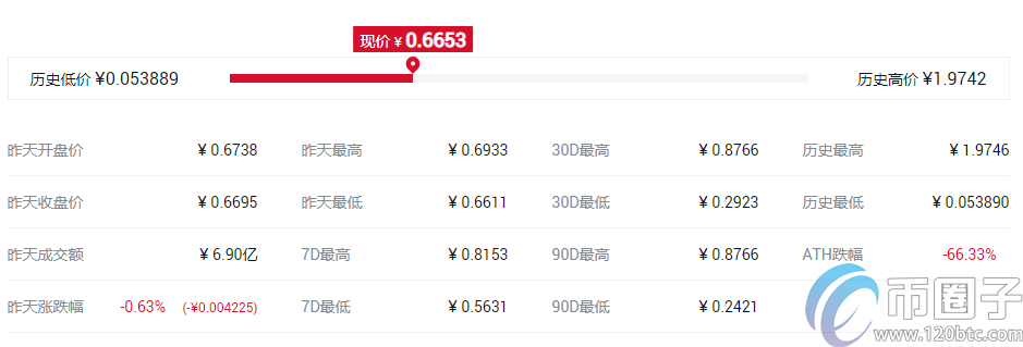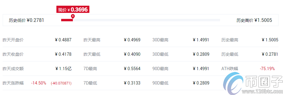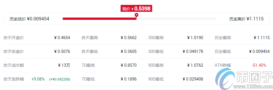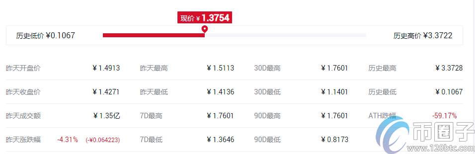 ENJ流通市值为1.26亿美元,流通数量为7.76亿,24小时成交额为1901.48万美元。