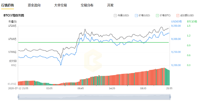 比特币市值1689.78亿美元,占全球总市值58.95%,流通数量1824.75万,24小时成交额71.64亿美元,上架了327家交易所。