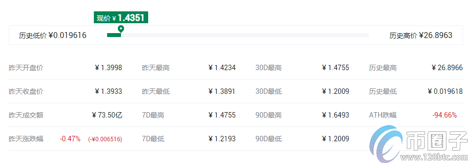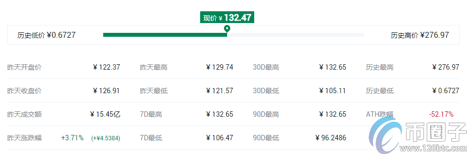 莱特币市值27.85亿美元,占全球总市值的0.97%,流通总量6399.7万,24小时成交额15.51亿美元,上架了297交易所。