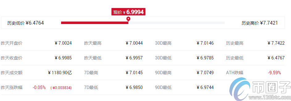 泰达币市值91.85亿美元,占全球总市值的3.09%,流通总量91.88亿,24小时成交额215.91亿美元,上架了190交易所。