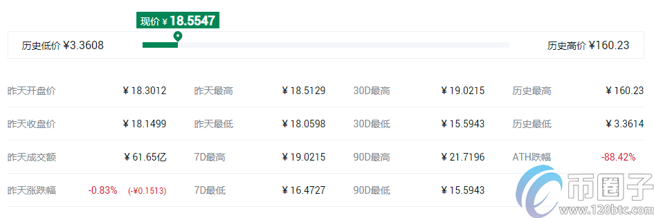 币安币市值25.46亿美元,占全球总市值的0.88%,流通总量1.52亿,24小时成交额2.3亿美元,上架了67交易所。