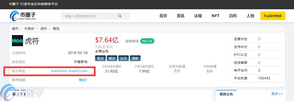 2.从打开的交易所页面找到虎符交易所的官网链接,点击进入