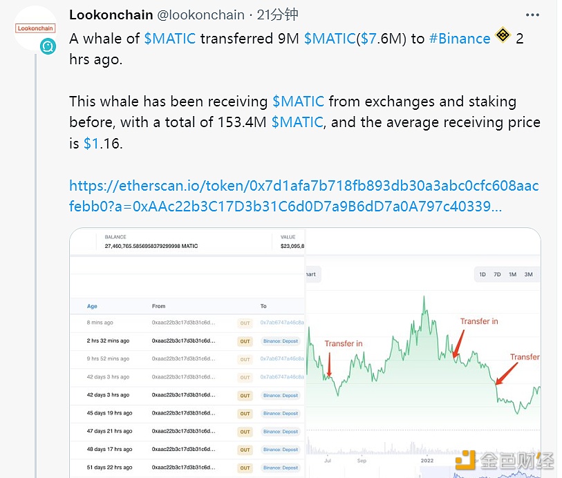 数据:2小时前,一巨鲸将900万枚MATIC转入Binance 更新时间:2024-11-04 21:03:32 •阅读 0 据Lookonchain监测,2小时前,一巨鲸将900万枚MATIC(价值约760万美元)转入Binance。 据悉,这头巨鲸此前一直在交易所和Staking中接收MATIC,总计1.534亿枚MATIC,平均接收价格为1.16美元。 以上就是腾赚小编为大家带来的全部内容,希望可以帮助到大家。3