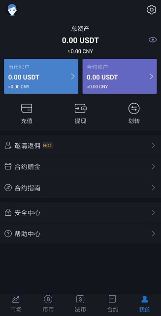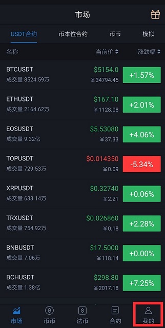 1、启动APP默认进入市场行情页面,点击右下角【我的】进入"个人中心"开始注册或登录;