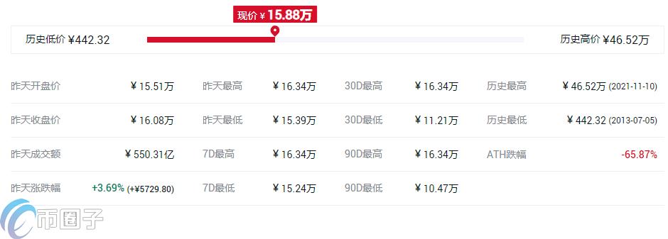 比特币历史最高价是68928.9美元,出现在2021年11月10日,它的历史最低价是65.53美元,出现在2013年7月5日。