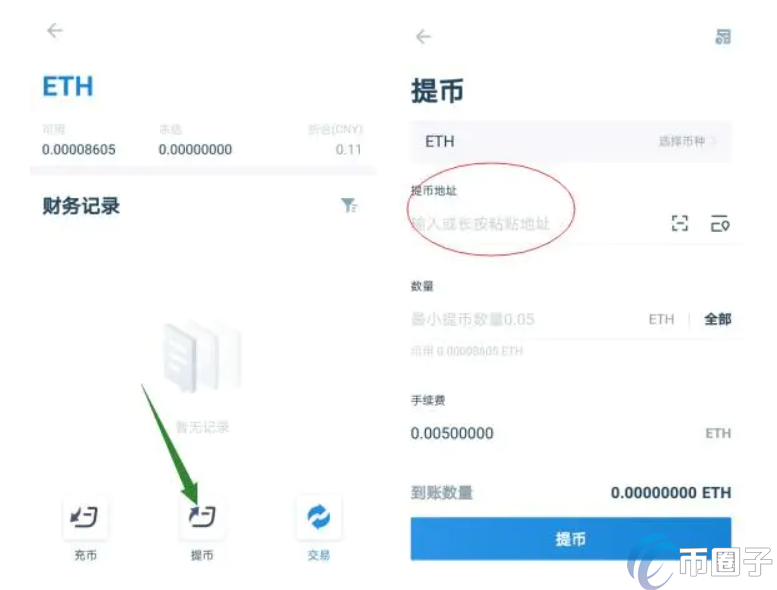 1、首先打开火币APP或者网页版,登录账号,在【资产】中找到要提取的币种,比如要提币以太坊(ETH)就点击【ETH】进去
