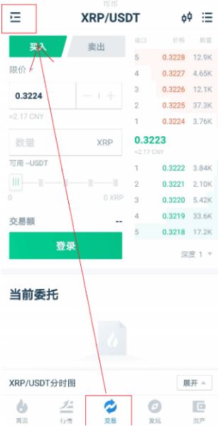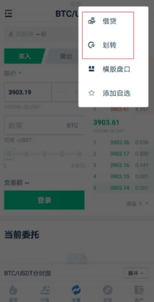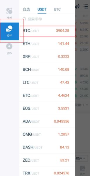三、选择“杠杆”,和想要交易的交易对,如BTC/USDT。