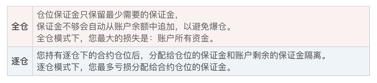 全仓和逐仓是您交易合约时可以选择的两种模式。
