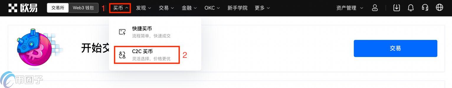 4、完成以上步骤后,在首页点击【买币】——【C2C买币】