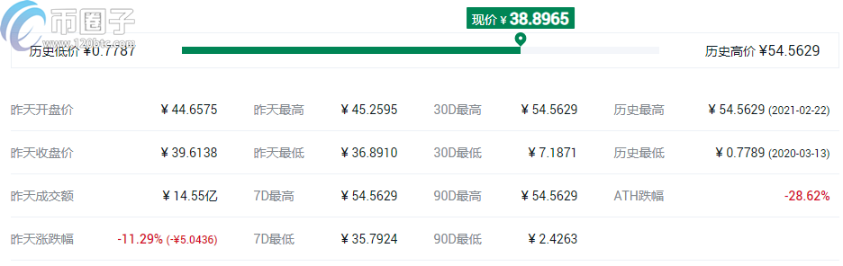 AAVE市值42.04亿美元,流通总量1227.53万,24小时成交额28.87亿美元。