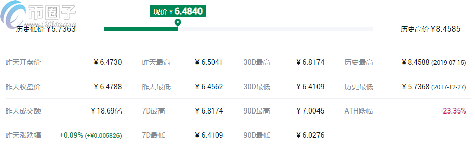 DAI市值22.65亿美元,流通总量22.62亿,24小时成交额1.9亿美元。