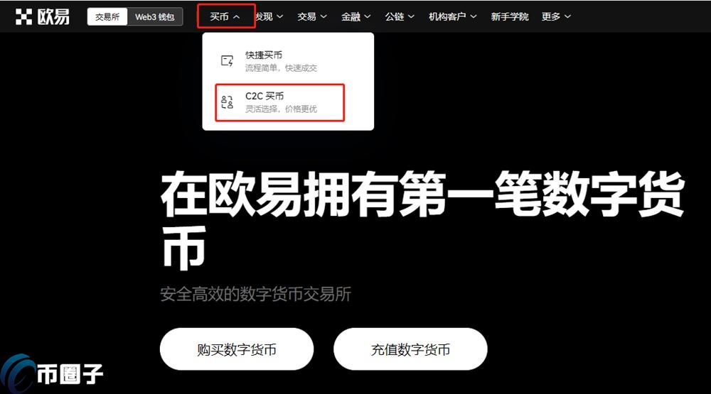 7.卖出BTC后,点击“买币”--“C2C买币”进入交易页面