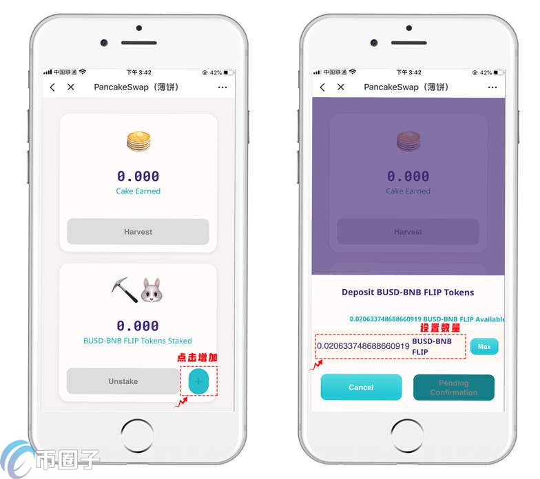 4.授权完成后点击灰色Unstake右侧的加号,在抵押界面设置FLIP的数量并授权。