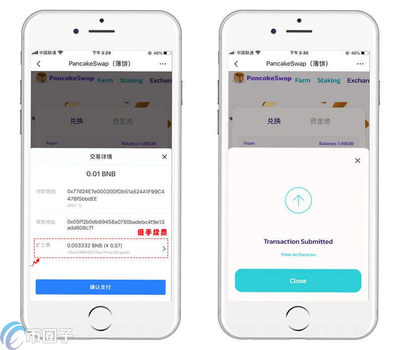 3.币安智能链转账手续费还是很便宜的,授权完成后耐心等待兑换成功。