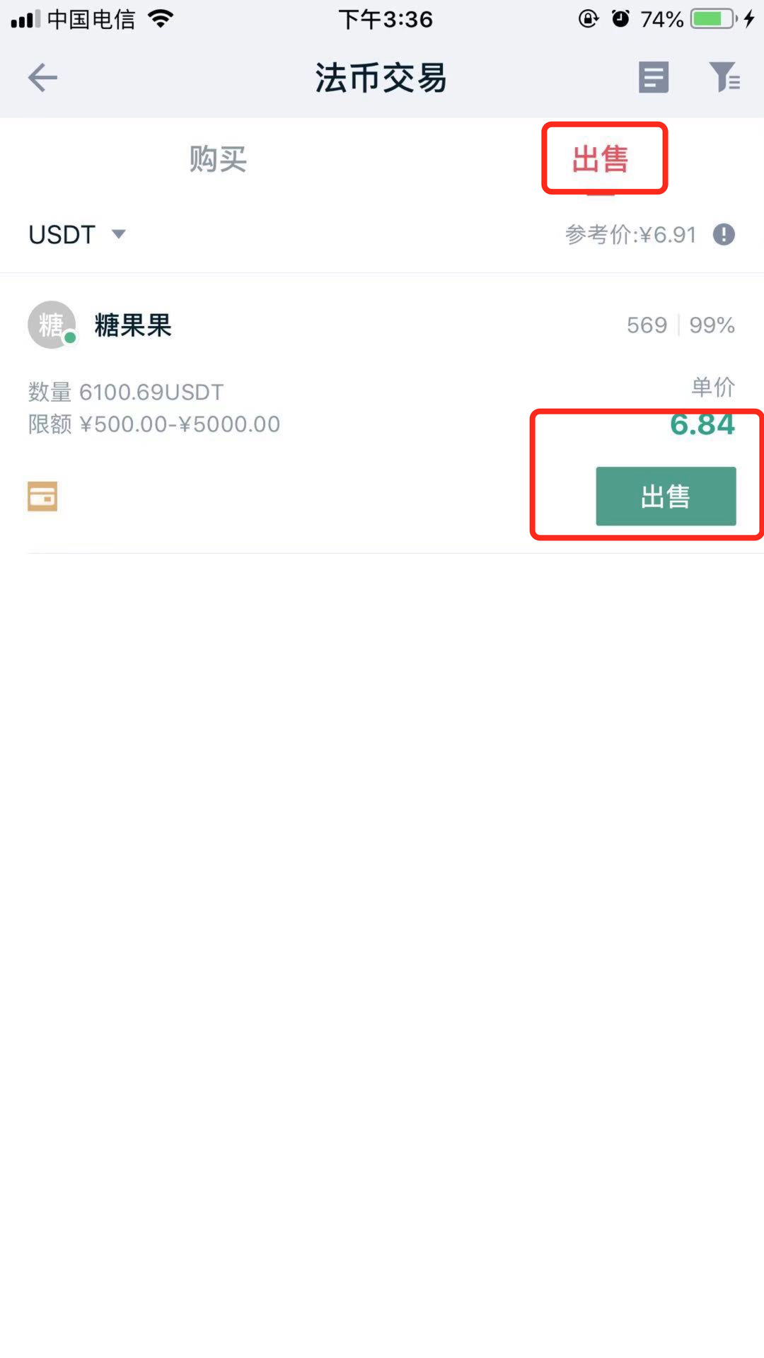 (注:出售USDT需要把币币账户的资金划转到法币账户。