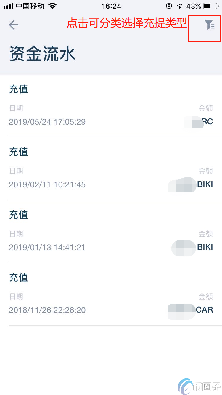 温馨提示:所有的提现充值可在,资产流水中查询。
