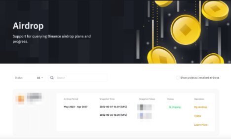 在binance空投门户界面,您可以根据需要筛选不同状态的空投活动。利用下拉菜单功能,选择“正在进行”、“即将开始”或“已结束”的空投项目。同时,通过勾选【显示已获得空投奖励的项目】选项,系统将自动为您筛选出已经成功获取空投奖励的项目列表。