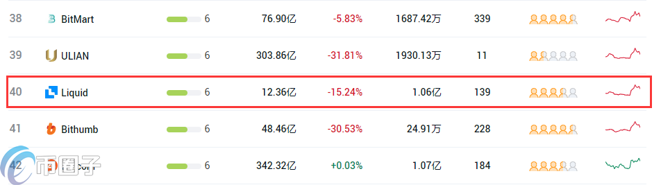 根据最新的行情数据显示,截止到2021年7月28日10:01,Liquid交易所的资产为1.06亿美元,在全球排名第40名,其24小时交易额为1.94亿美元,共有72个币种以及139个交易对,可以看出该交易所在市场上还是比较受欢迎的。