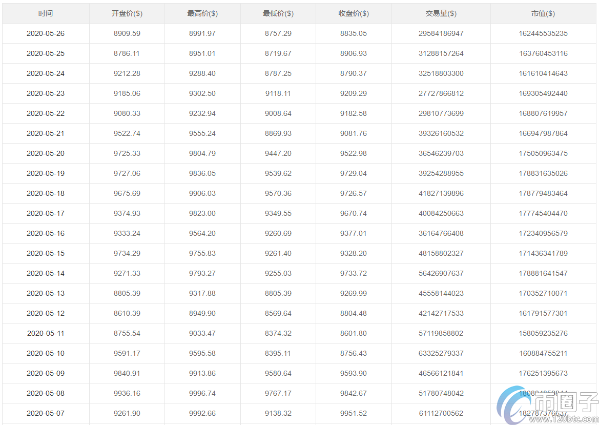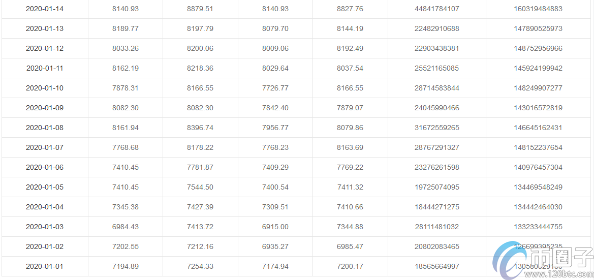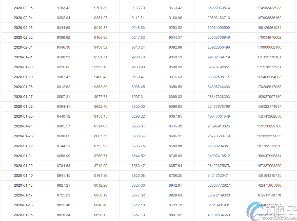 2020年1-5月份比特币价格详细一览