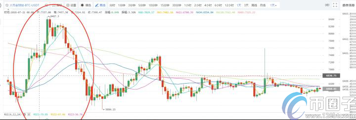 之前眼睁睁的盯着大饼短短半个月,从7-15的6300到了7-30最高价8500美金。全市场的眼光都盯在这一只大象在起舞。按照以往的逻辑,比特币将搭台接下来,则会使小币种狂欢。