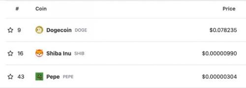 狗狗币 (DOGE) 和柴犬 (SHIB) 在模因代币领域迎来了新的挑战者,因为 Pepe the Frog 模因币pepe (PEPE)已成为一个强大的竞争对手。PEPE 在过去一周飙升 896%,现已成为第三大模因代币,仅次于 DOGE 和 SHIB。仅在过去 24 小时内,该代币就涨幅超过 79%。