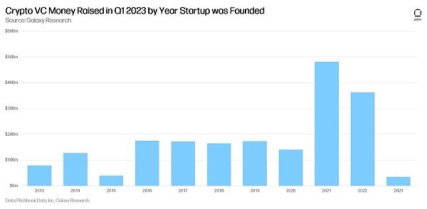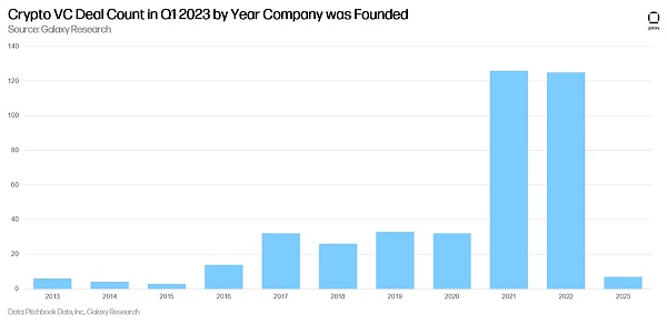 成立于 2021 年和 2022 年的加密初创公司在 2023 年第一季度获得了最多的风险投资。