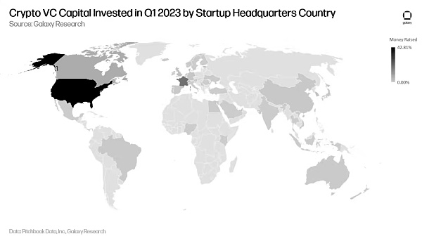 新旧类别都在增长。虽然“贸易、交易平台、投资和借贷”类别的初创公司在加密行业长期占据主导地位,但较新的类别“Web3、、DAO、元宇宙和链游”的初创公司,包括 市场、DAO 工具、链游开发商,我们可以继续看到大量的投资。此外,代币化和企业区块链等处于发展早期的概念在 2023 年第一季度的融资数量和筹集的资金额均有所增长,这表明市场正在寻找“区块链用例”,因此我们预计代币化和区块链用例将继续在 2023 年快速发展,特别是考虑到加密市场熊市和充满挑战的美国监管环境。话虽如此,但加密行业和加密市场是全球性的,对加密经济、社区模式、加密货币的需求,仍然是 VC 投资活动的最大驱动力。