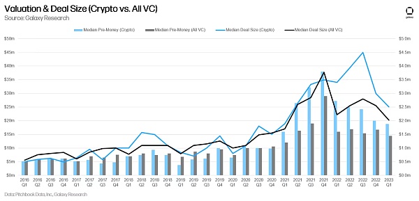 VC 投资规模和初创公司融资前估值的下降也符合更广泛的 VC 市场的下滑。