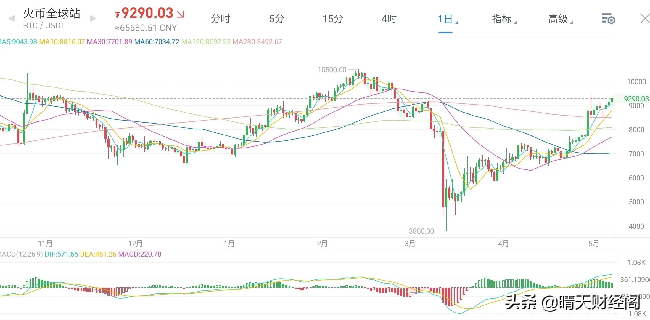 4月以来比特币也是一度缓缓上涨趋势,最近也是突破了9000美元,小牛市开启说不上但是大趋势向上还是可以的。