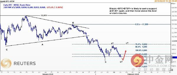 路透大宗商品及能源技术分析师王涛指出,波浪形态及费波纳奇预测分析显示,比特币可能在7671美元再度寻求支撑,然后徘徊在该水平上方或展开一波反弹。