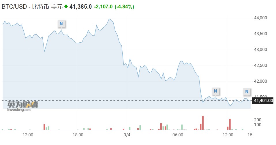 截至发稿,比特币跌4.84%,至41385美元。以太坊跌至2719.82美元,跌幅高达6.68%。另根据CoinGecko的数据,其他大多数代币在过去24小时内也出现了下跌。