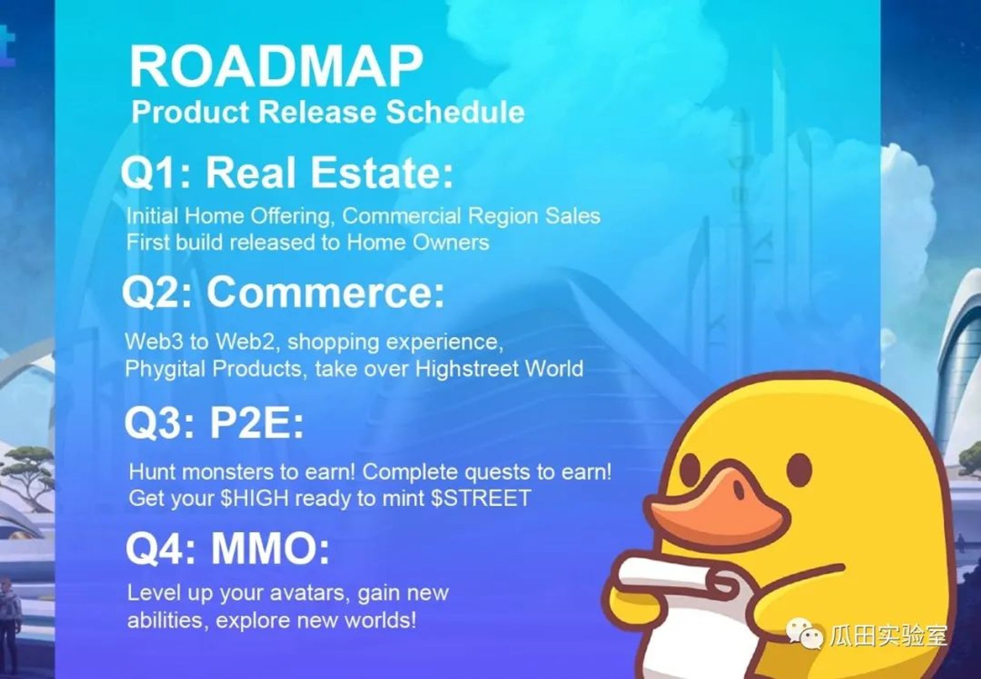 当前 Highstreet World 由 Highstreet City、Binance Beach、AVAX Alps、Asteroid 325、Animoca Archipelago 和 Republic Realm 六个可探索的地区组成,主要玩法包括升级、购置房屋、游戏战斗、驯养宠物 NFT 等多种活动。据说币安会在游戏里建立 Binance Beach 海滩,提供币安平台的各种服务和 DeFi 产品。Animoca Brands 也将为项目引入众多知名项目和品牌,扩大其元宇宙的影响力。