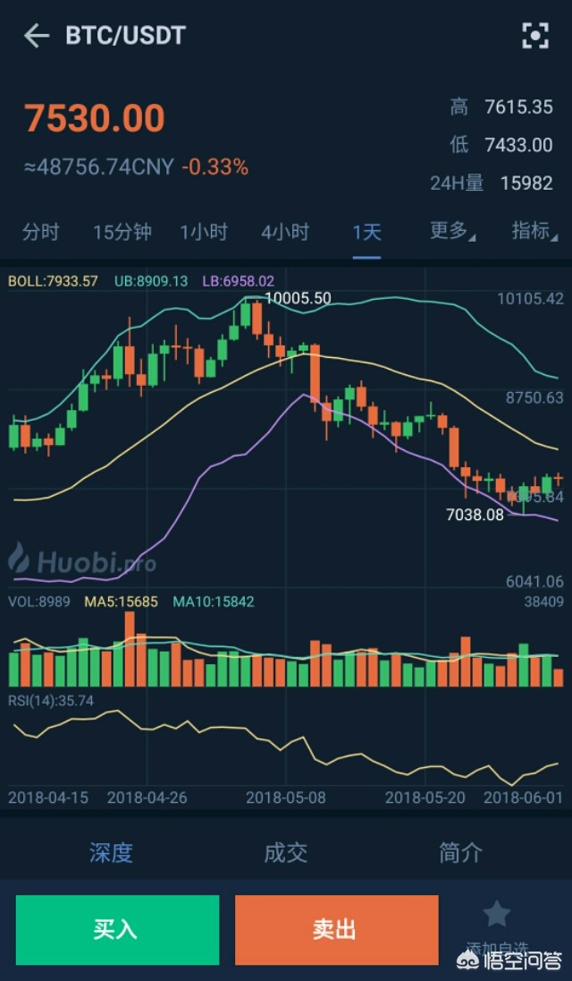 这是2018年6月1日14:30分火币USDT区比特币价格
