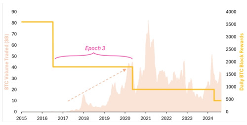 此外,报告进一步指出,2017年到2020年,比特币交易量的急剧上升,才是真正导致区块奖励影响力大幅下降的原因。