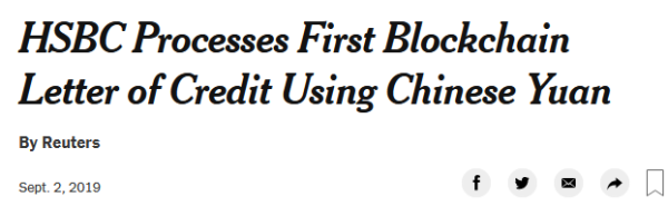 去年5月,汇丰宣布完成全球首笔使用区块链技术的信用证交易,今年4月宣布完成中国内地首笔区块链跨境信用证交易。